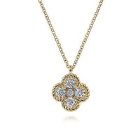 Replete with nautical-inspired twisted rope detailing, this Hampton collection pendant necklace is ideal for everyday styling and layering. The quatrefoil pendant combines a twisted 14K yellow gold frame with a softly rounded cluster of scintillating 0.37ct pavé diamonds. An adjustable gold cable chain completes this timeless necklace.
