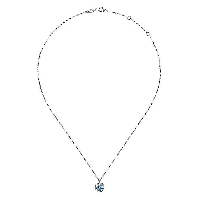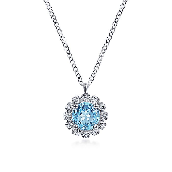 HOME / Gabriel & Co. NK6631W45BT 14K White Gold Round Blue Topaz and Diamond Halo Pendant Necklace