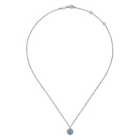 Gabriel & Co. NK6631W45BT 14K White Gold Round Blue Topaz and Diamond Halo Pendant Necklace