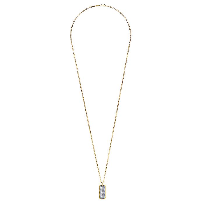 Gabriel & Co. NK6843-32Y45JJ 32 inch 14K Yellow Gold Diamond Pave' Dog Tag Hollow Chain Necklace