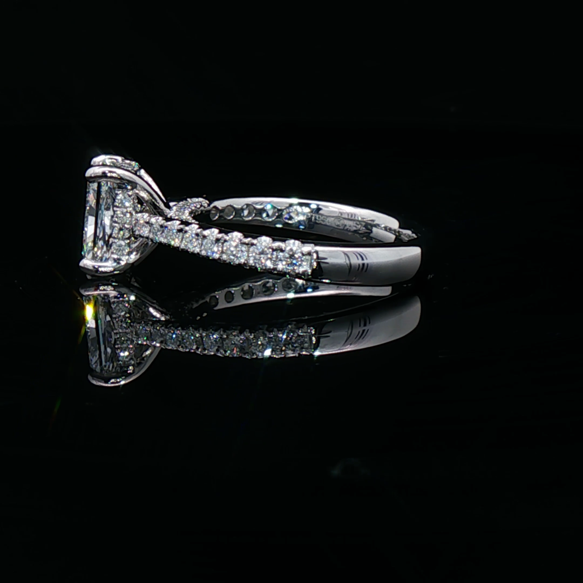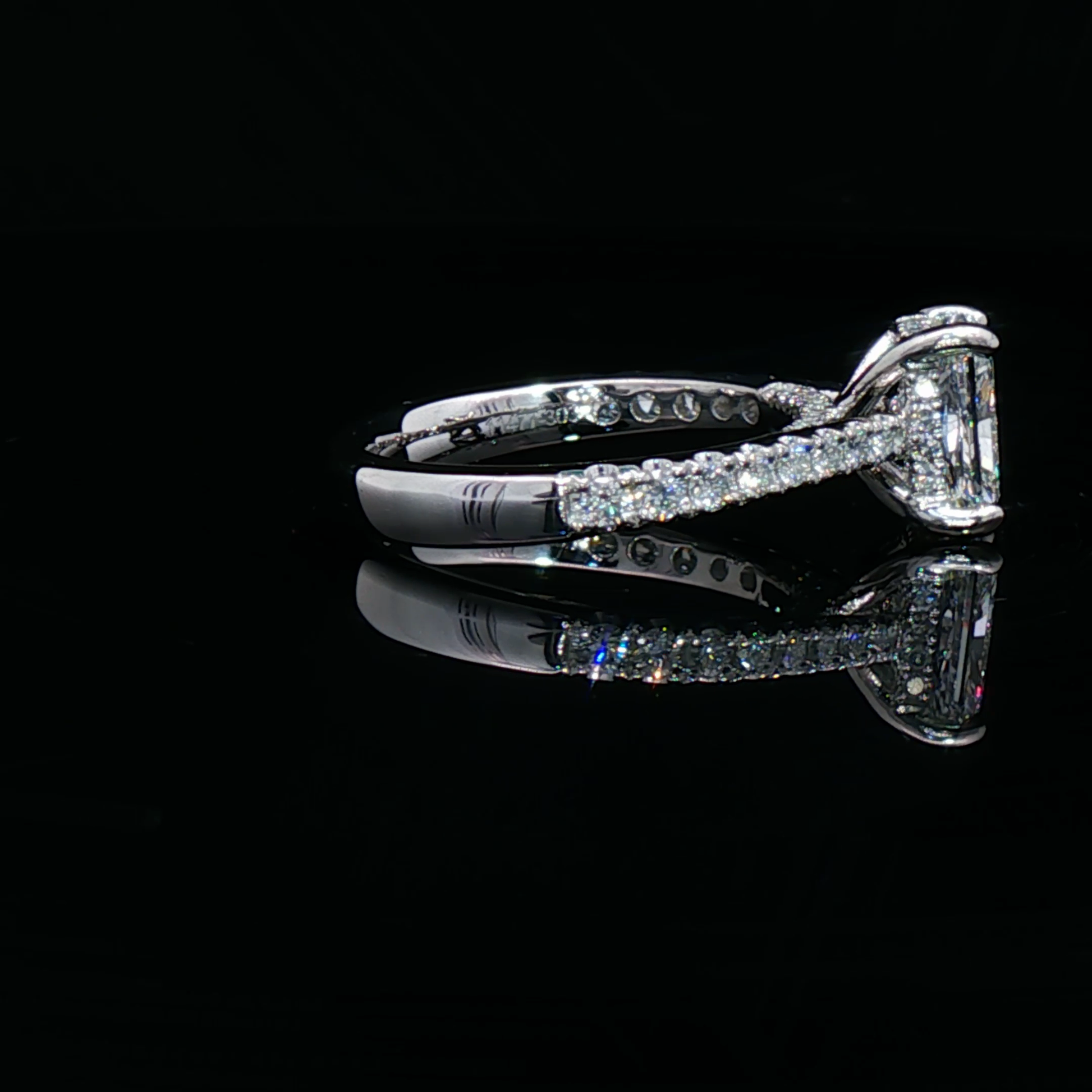 Sparkle in style with this mesmerizing platinum engagement ring. Pictured with a brilliant Radiant Cut UltraFire™ 1.53 carat Lab Grown diamond, exuding unmatched sparkle and beauty. A dazzling display of meticulously set .40cttw of supporting diamonds adorns the shank, creating a breathtaking composition of light and fire.