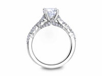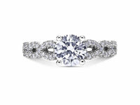 Engagement ring with open twist diamond shank and diamond namaste detail in the gallery