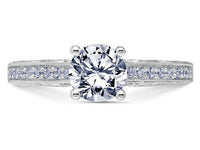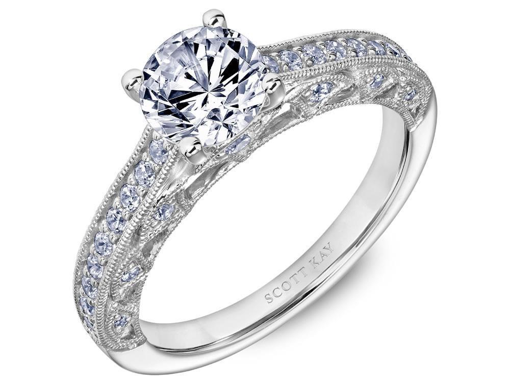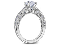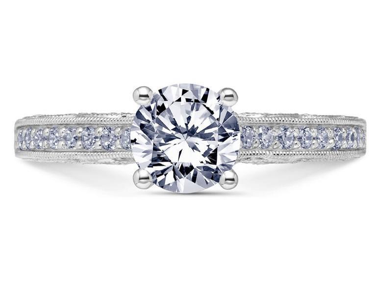 Engagement ring with diamond shank and diamond & milgrain accented arches in the gallery