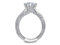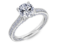 Engagement ring with diamonds down the shank and diamond namaste profile