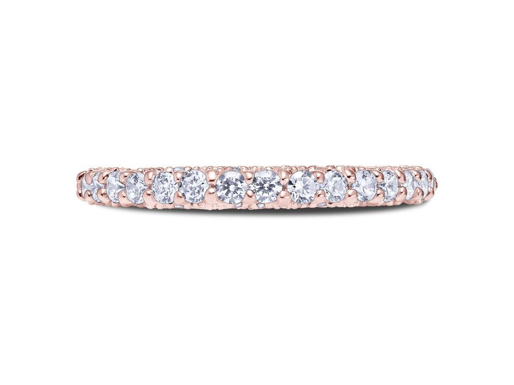 Diamond wedding ring with diamond accented open archways in the profile