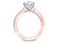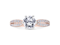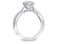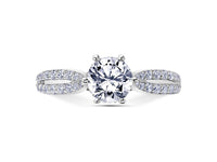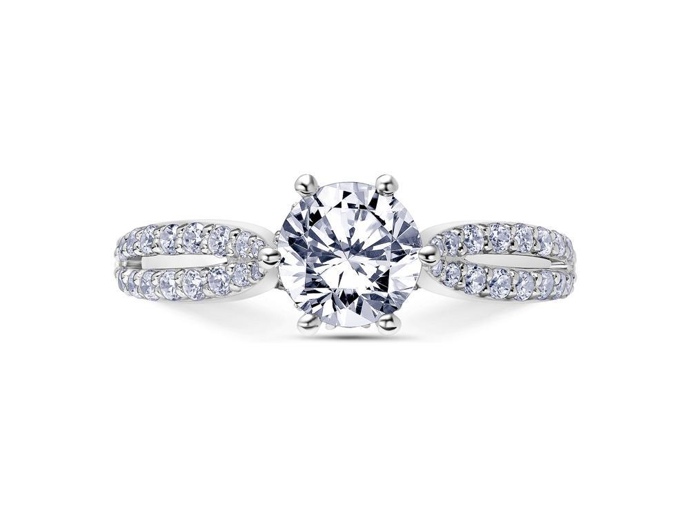 Engagement ring with diamond split shank and diamond accented head and bridge
