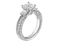 Ladies 3 Stone Princess Crown Mounting with Round Diamonds in the Shank & Flame Engraving