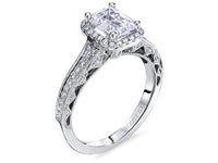 Heavens Gates Tapered Filigree Mounting with Emerald Halo & Millgrain Detail