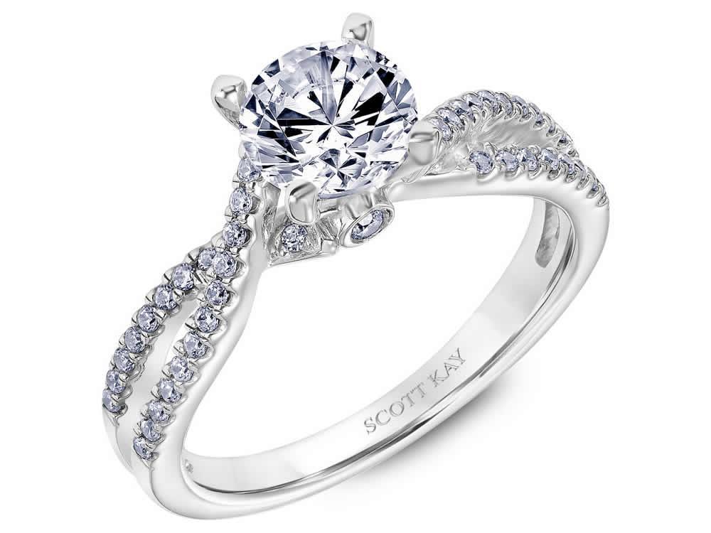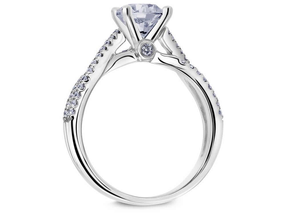 Engagement ring with a diamond twist shank and a surprise diamond in the gallery