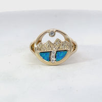Discover the beauty of nature with this exquisite mountain-inspired ring. Crafted with intricate details, it features shimmering opal and sparkling stones that capture the essence of the great outdoors. Perfect for nature lovers, this ring is a statement piece that adds a touch of elegance to any outfit.