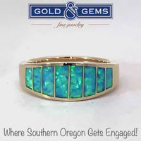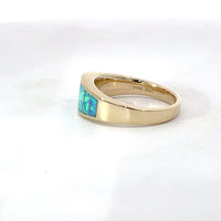 This exquisite ring features a captivating inlay of vibrant opals, each stone radiating a mesmerizing play of color. Set in a sleek gold band, it combines elegance with a touch of modern flair, making it the perfect accessory for any occasion.