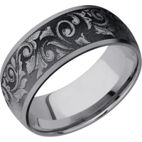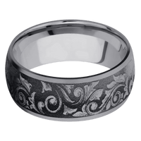 9 mm wide/Domed/Tantalum band with a laser carved Western Scroll pattern.