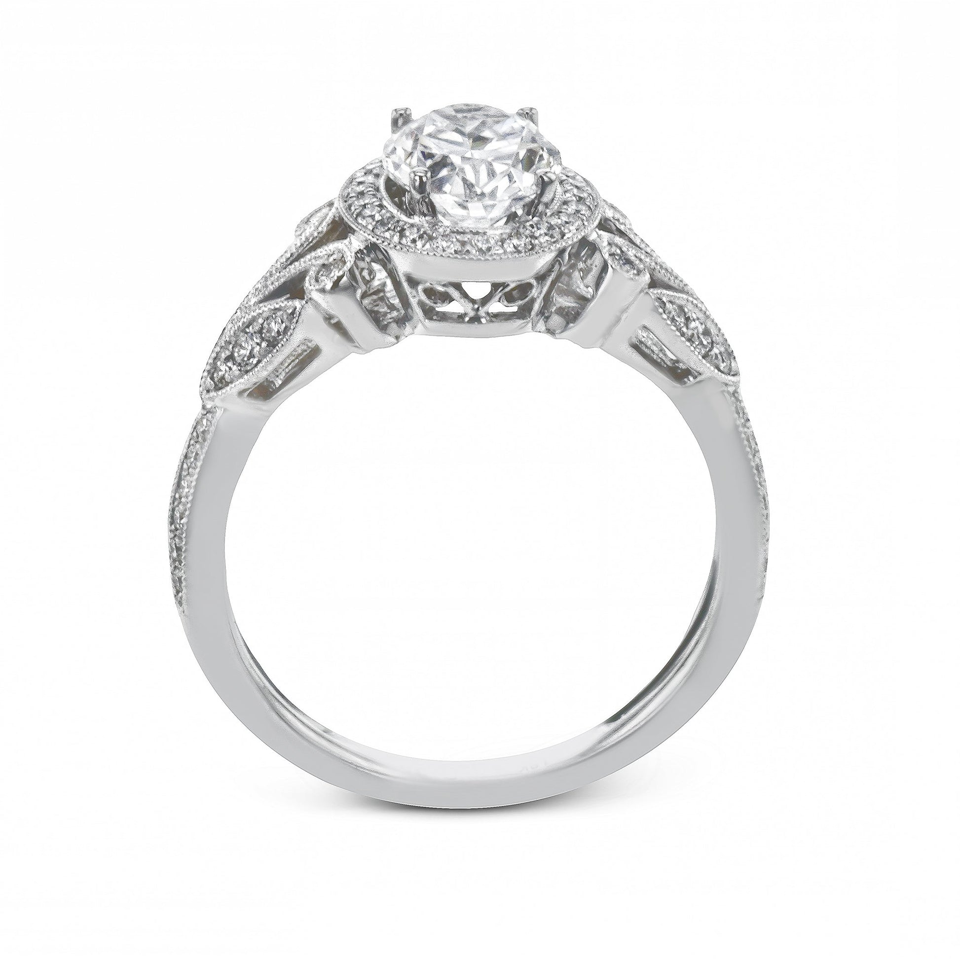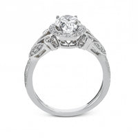 This amazing engagement ring features vintage-inspired design elements and is set with brilliant white diamonds.