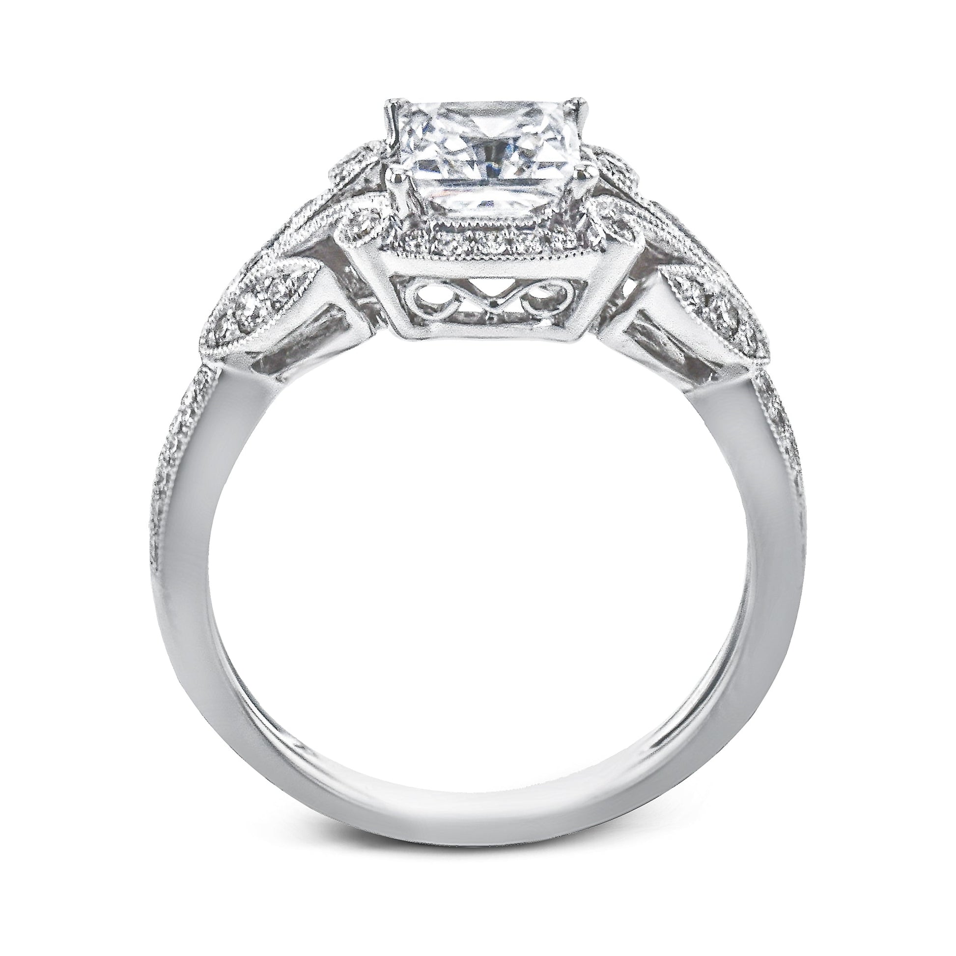 This amazing engagement ring features vintage-inspired design elements and is set with brilliant white diamonds.
