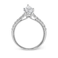 The classic design of this stunning ring features sparkling white diamonds along the band.