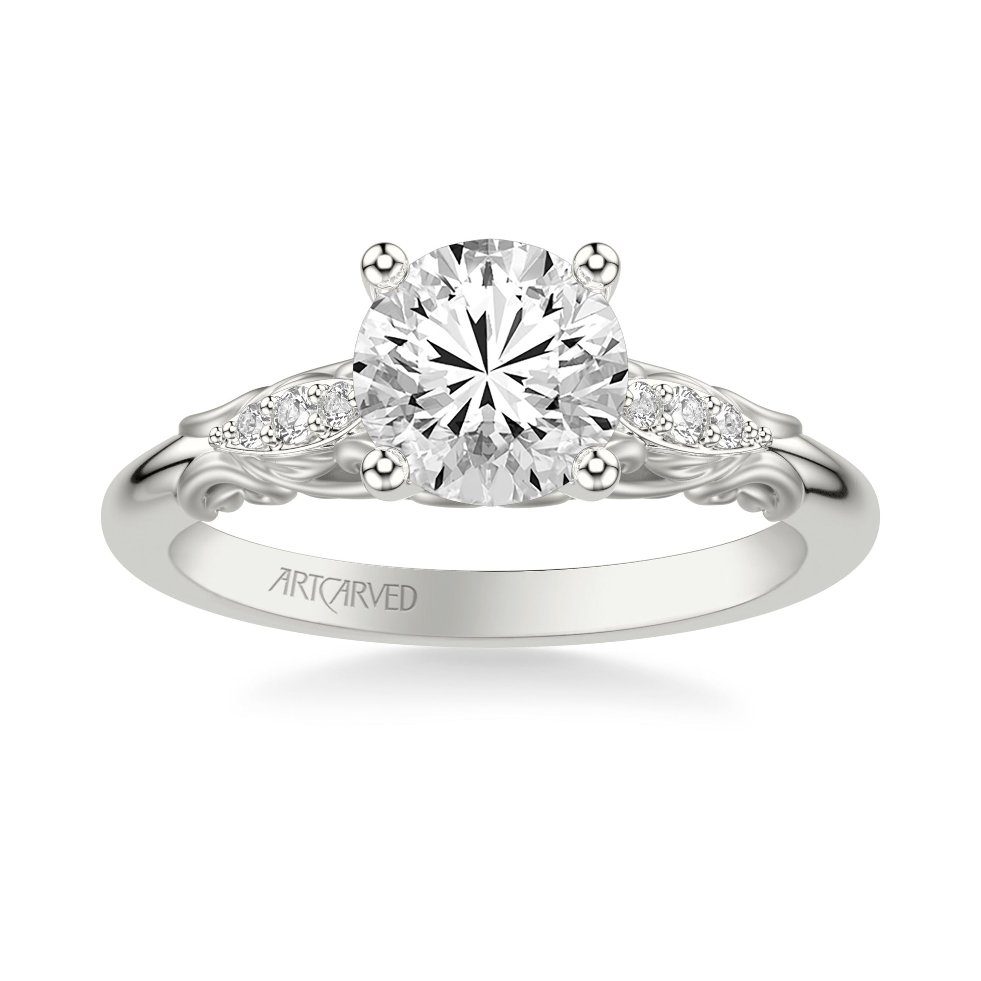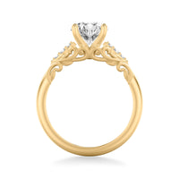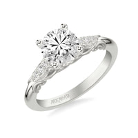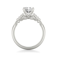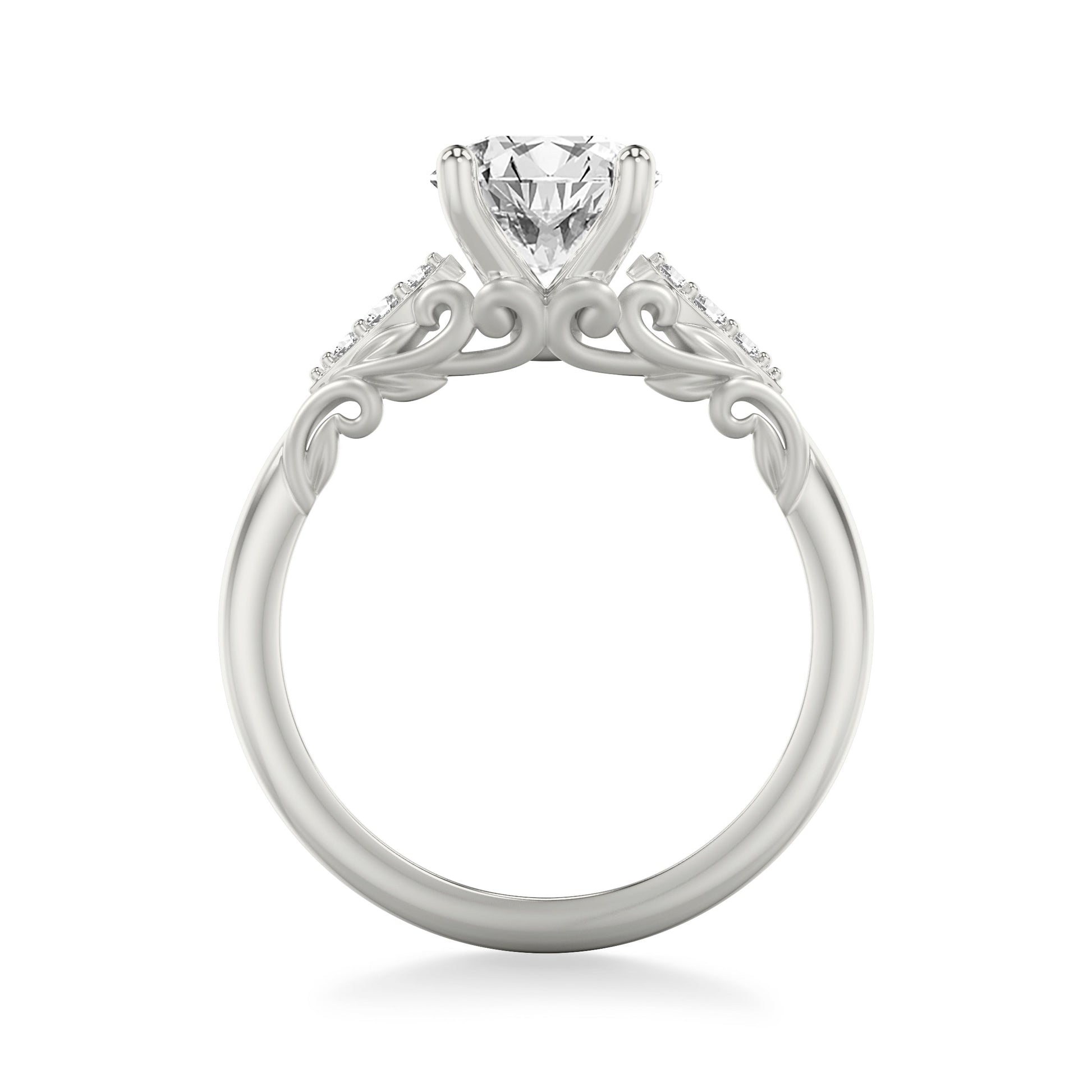 Lyric Engagement Ring with Glass Bead Finish Filigree Scroll Design and Milgrain Diamond Accents