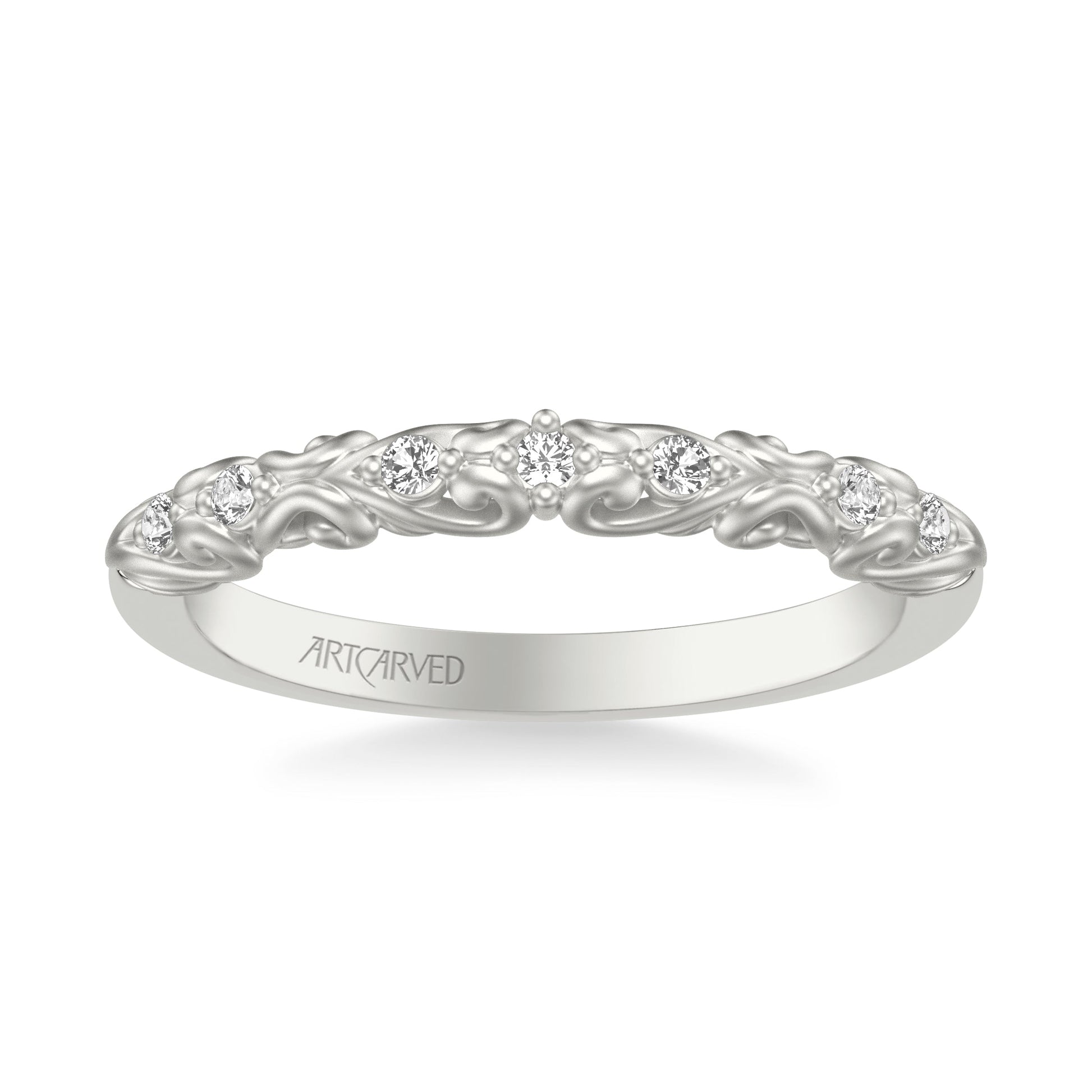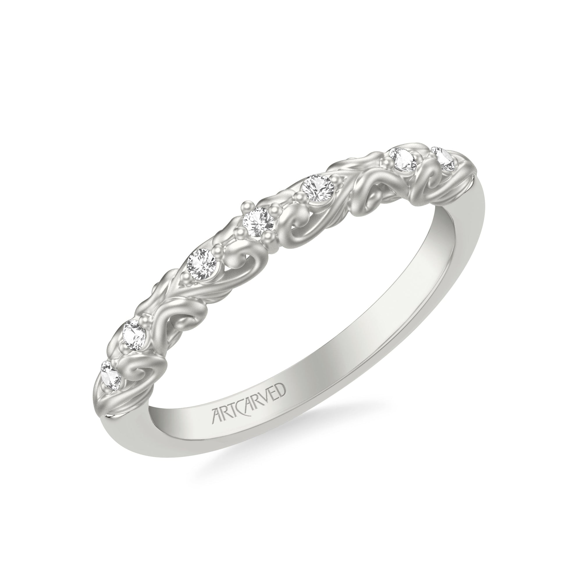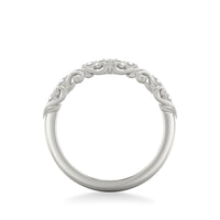 Lyric Wedding Band with Glass Bead Finish Filigree Scroll Design and Diamond Accents