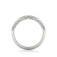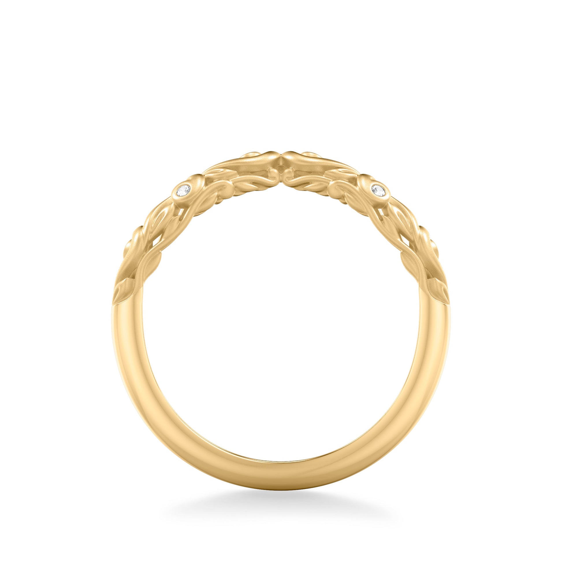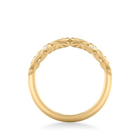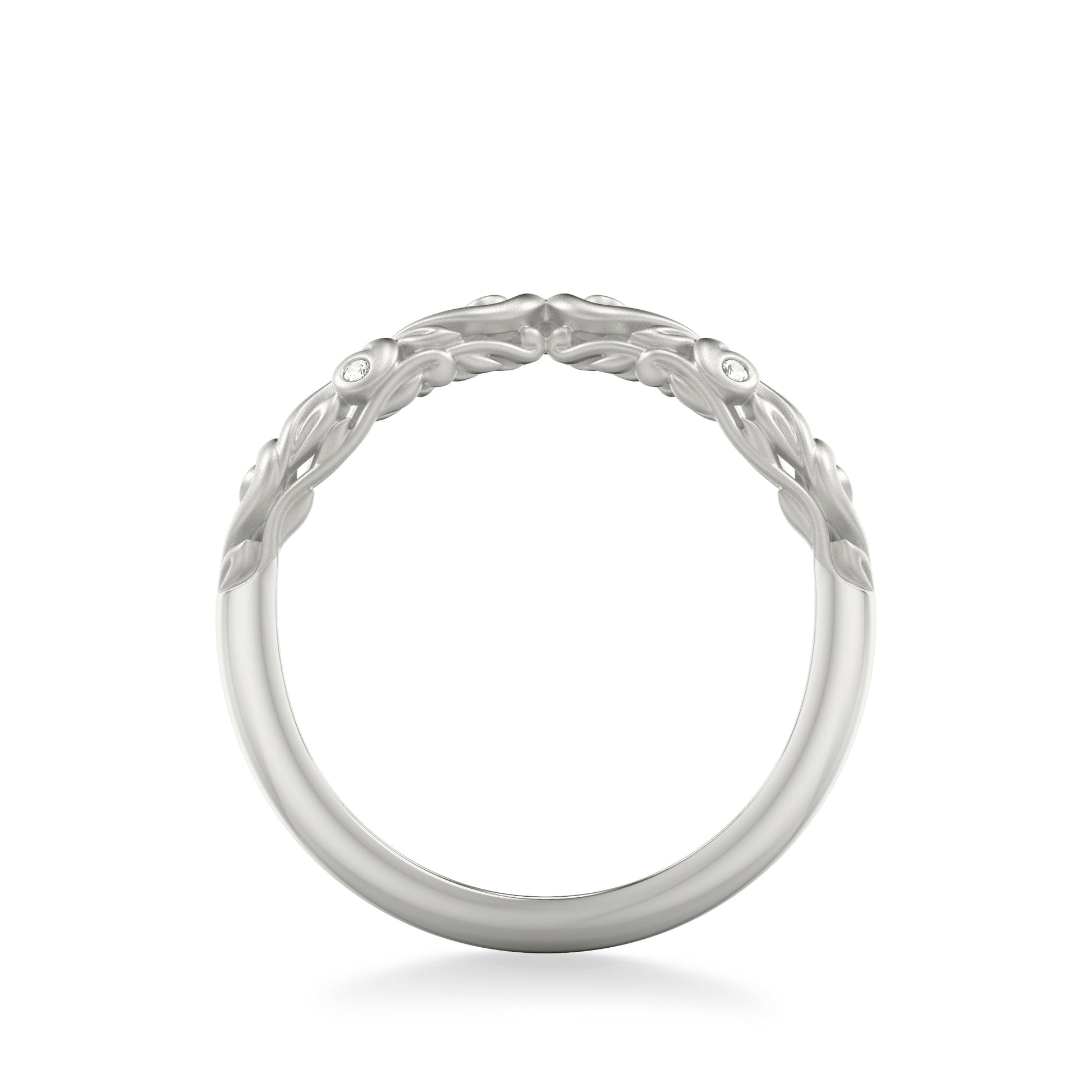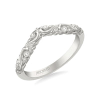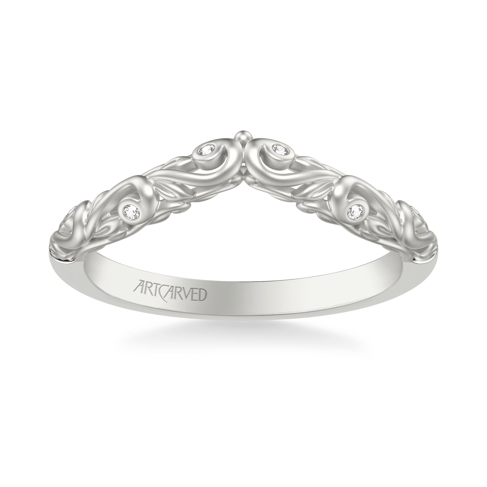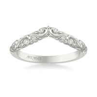 Lyric Curved V Wedding Band with Glass Bead Finish Filigree Scroll Design and Diamond Accents