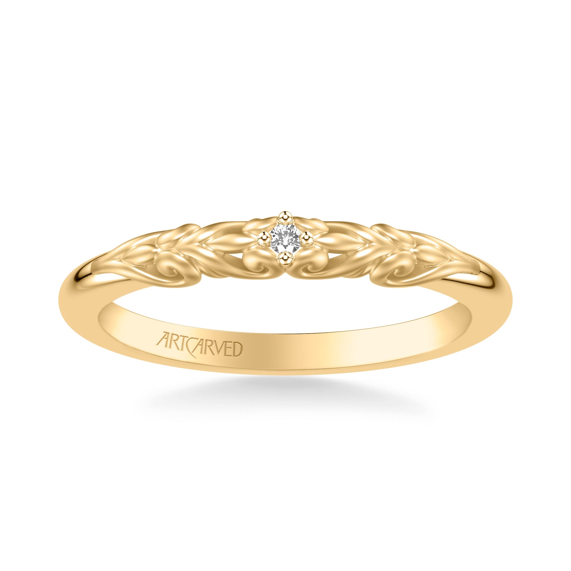 Lyric Wedding Band with Glass Bead Finish Filigree Scroll Design with Single Round Diamond Accent
