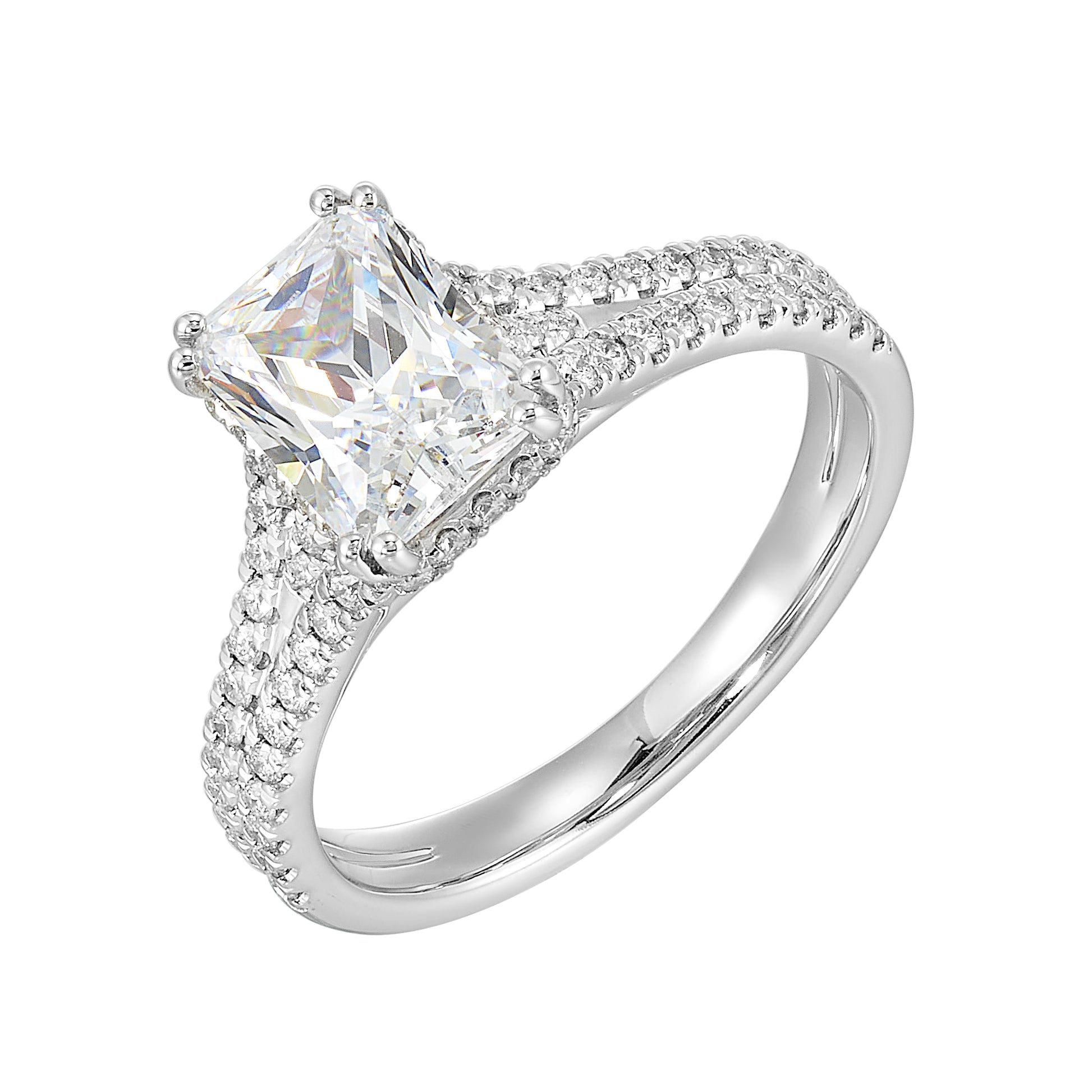 14Kt White Semi Mount 3/8Ctw For 2Ctw Radiant Center