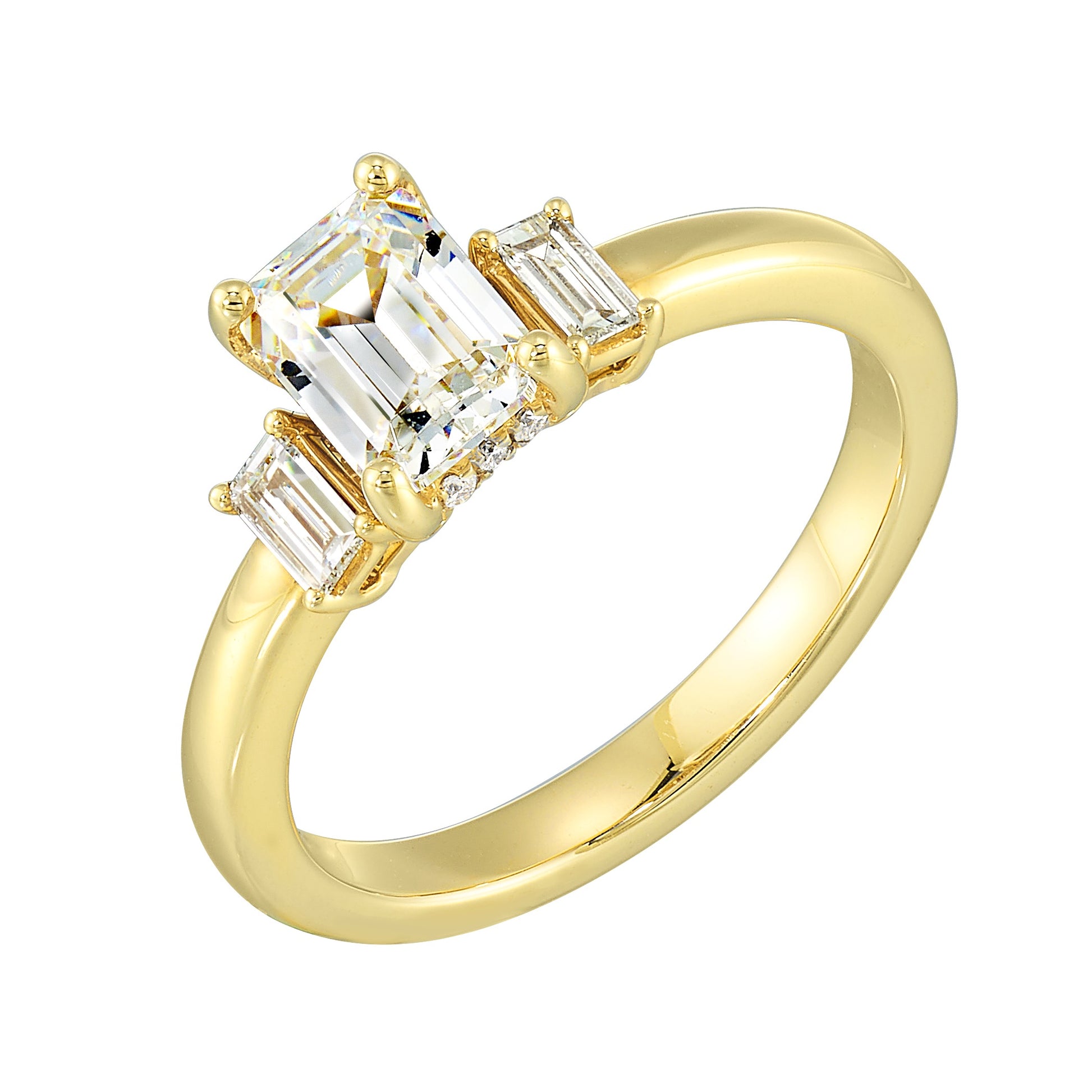 14Kt Yellow Semi Mount 1/5Ctw For 1 1/2Ctw Emerald Cut Center