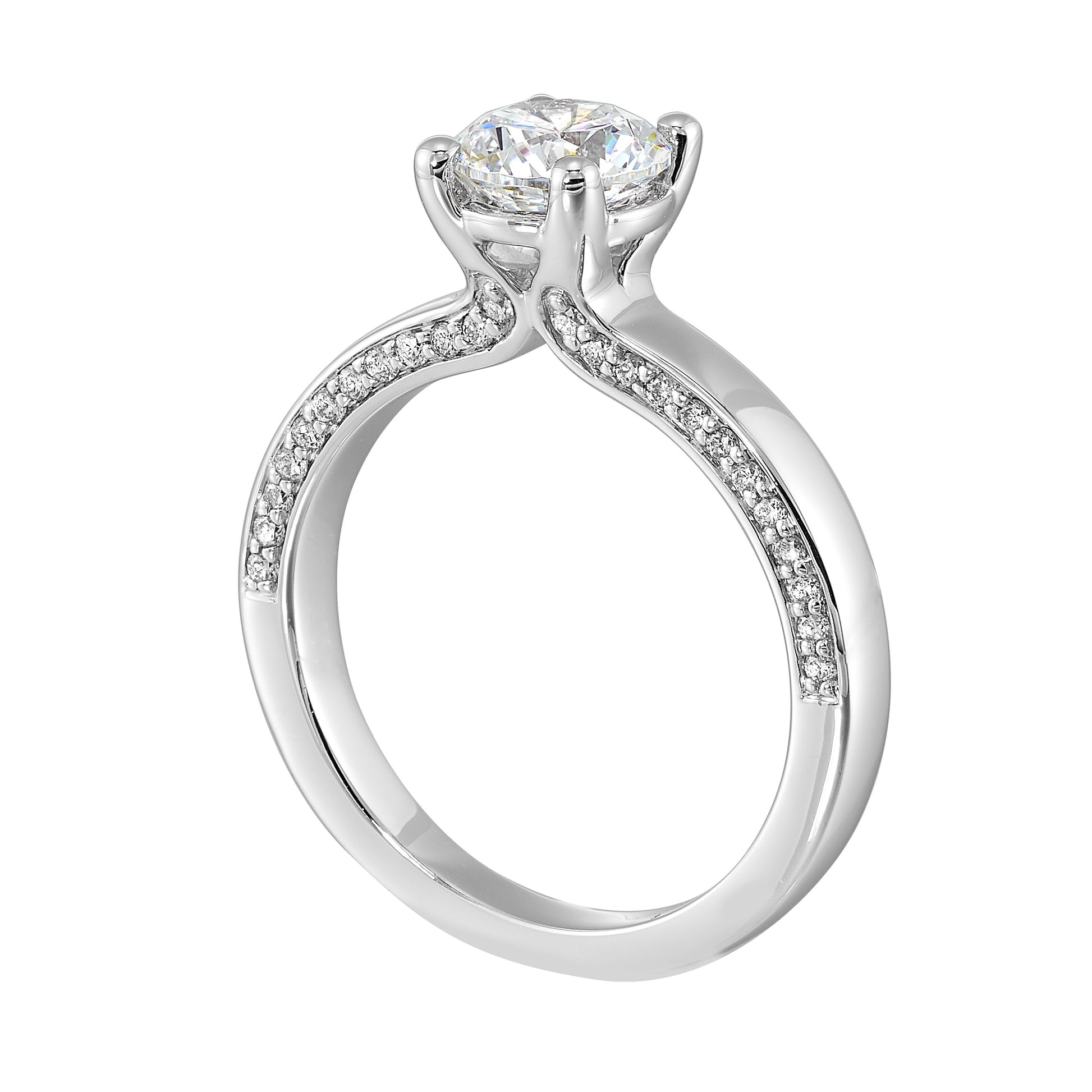 14Kt White Semi Mount 1/4Ctw For 1Ct Round Center