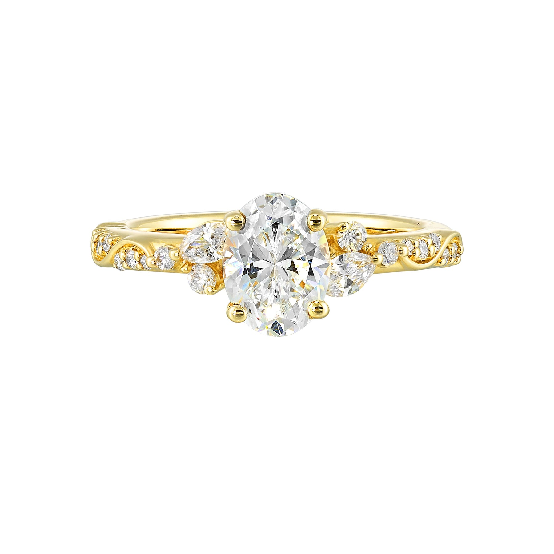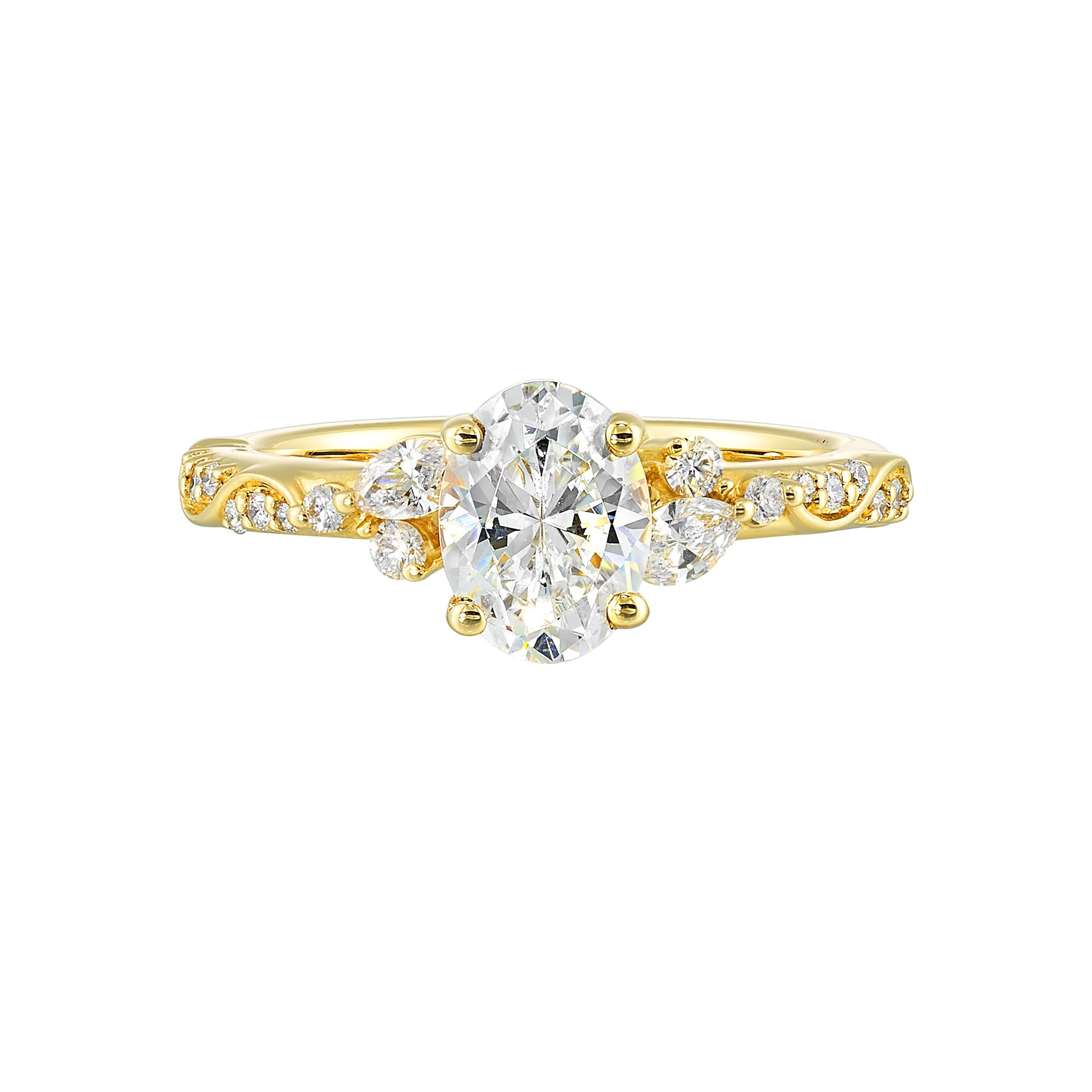 14Kt Yellow Semi Mount 1/4Ctw For 1Ctw Oval Center