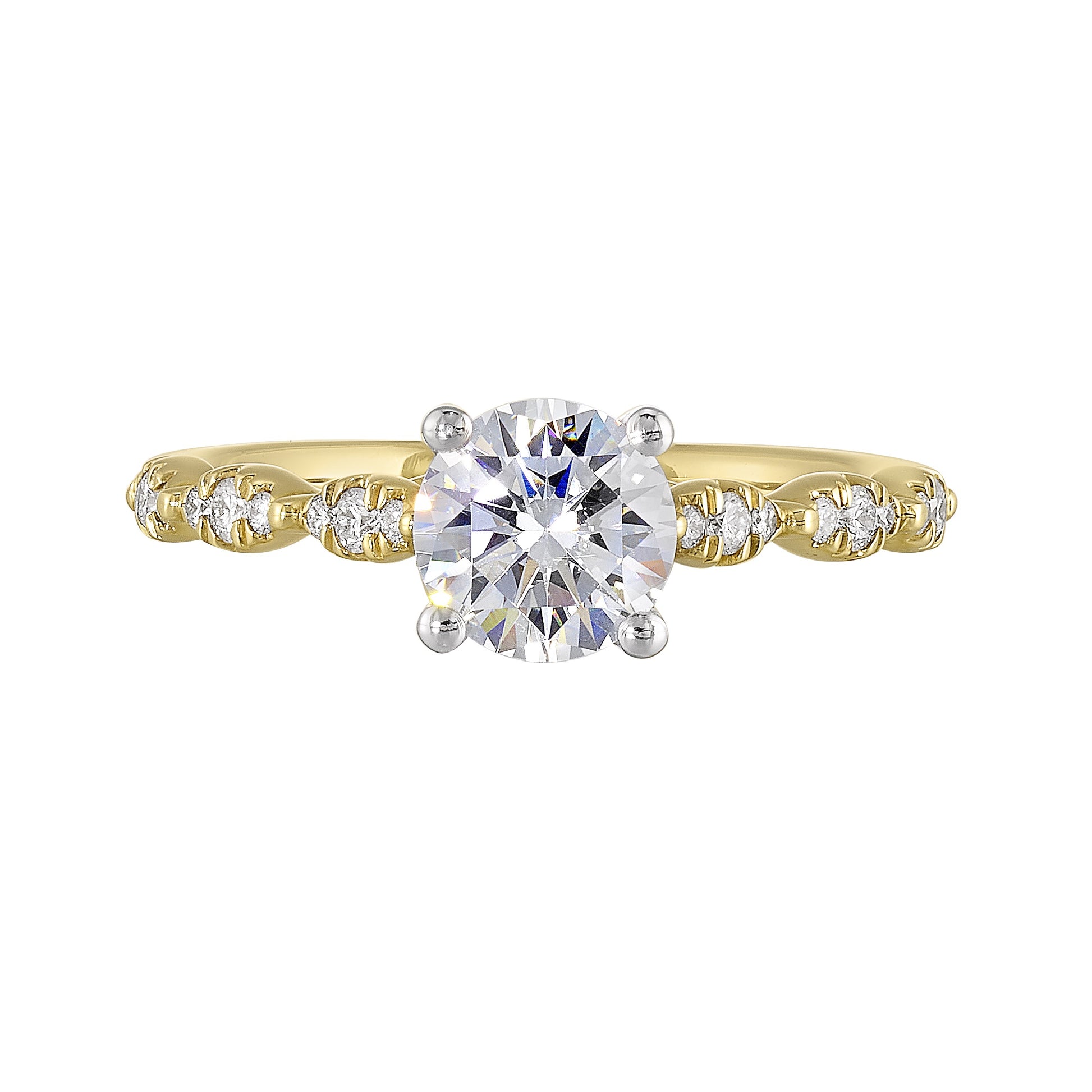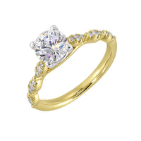 14Kt White Yellow Semi Mount 1/6Ctw For 1Ct Round Center