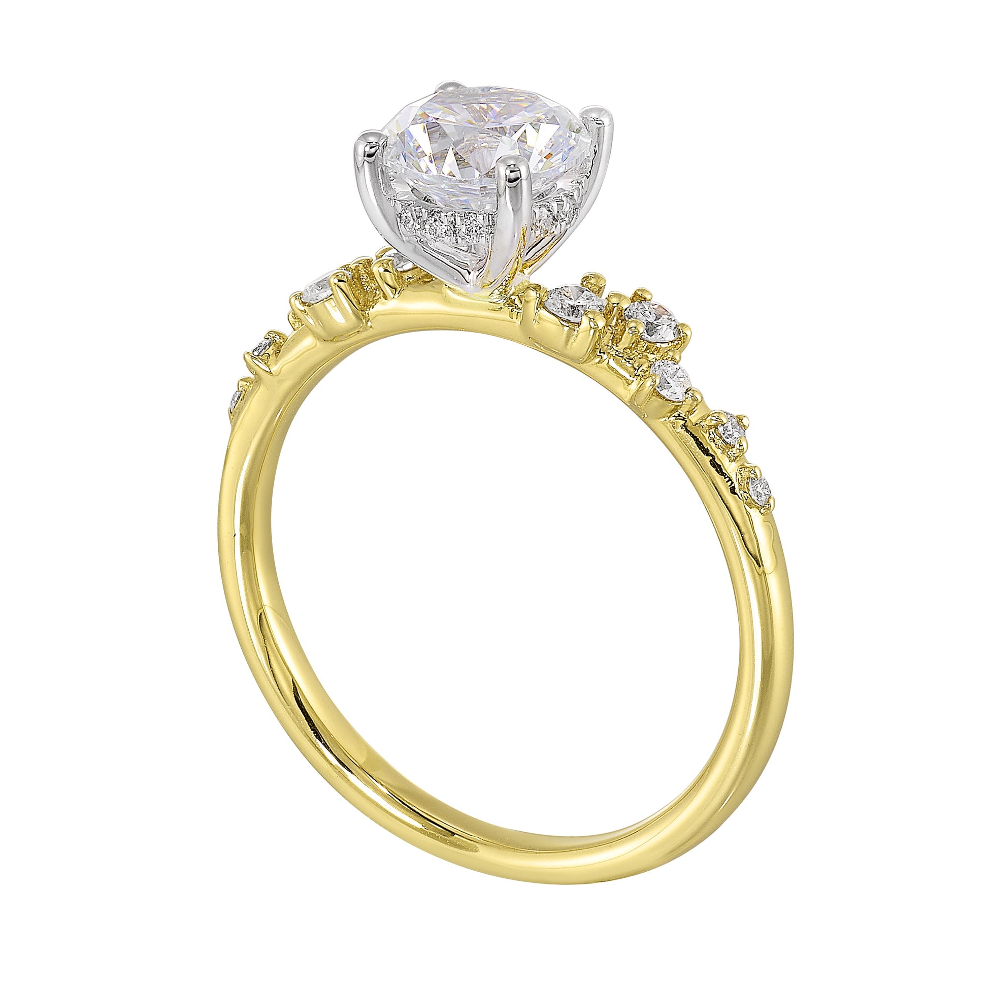 14Kt White Yellow Semi Mount 1/5Ctw For 1Ct Round Center