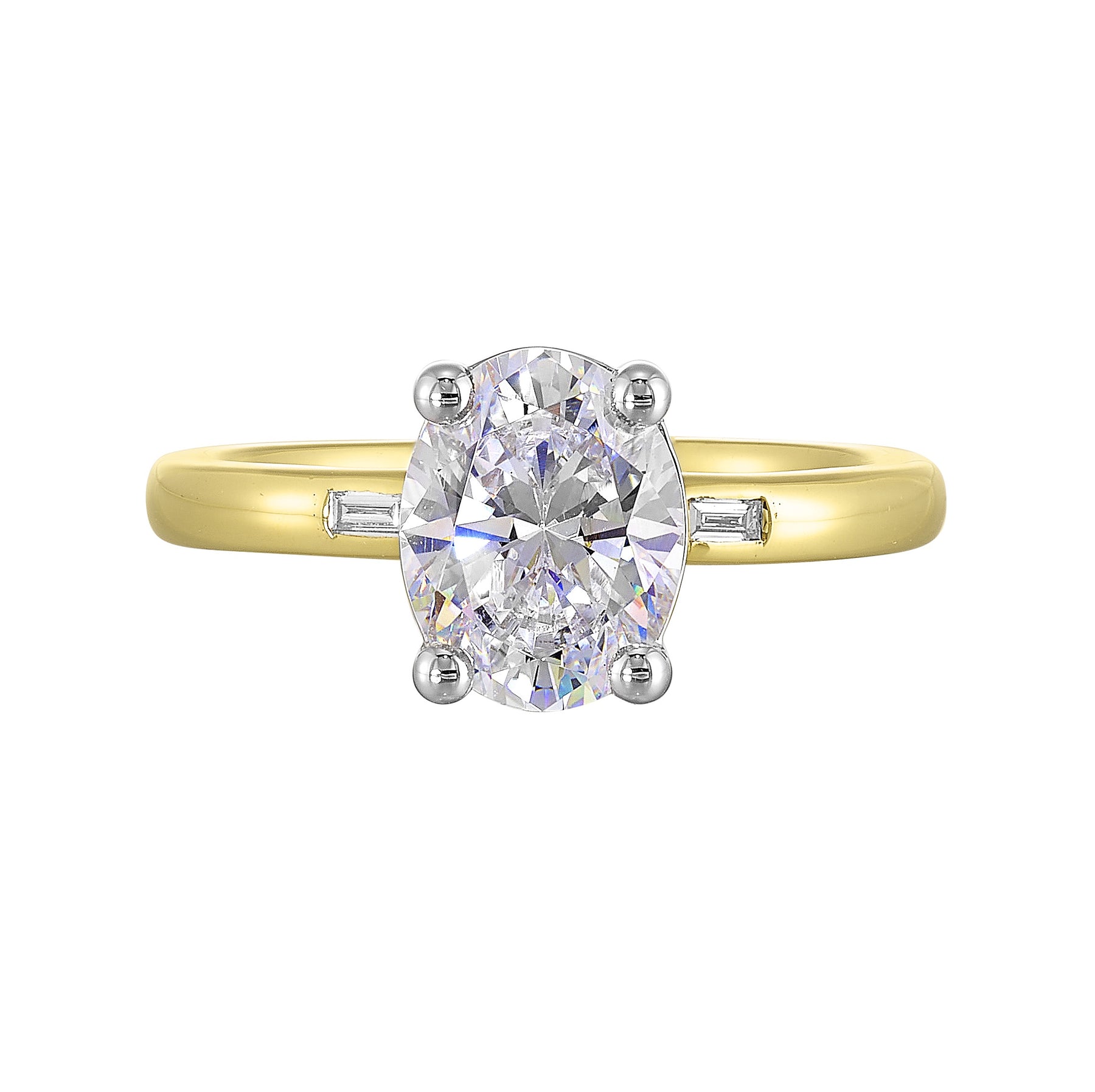 14Kt White Yellow Semi Mount 1/20Ctw For 2Ct Oval Center