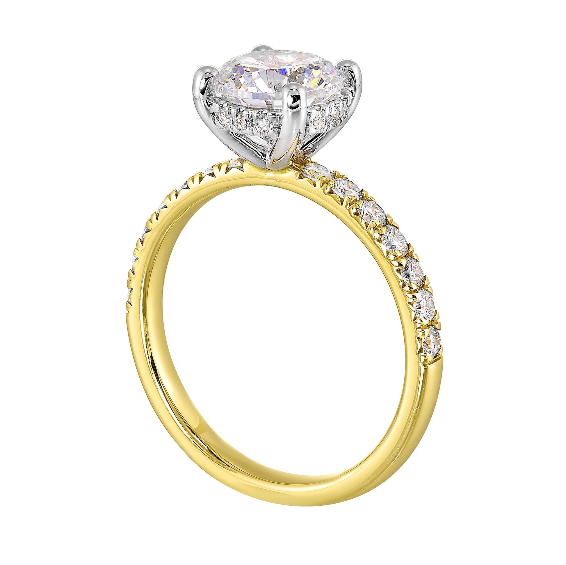 14Kt White Yellow Semi Mount 3/8Ctw For 1 1/2Ct Round Center