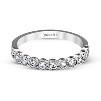This stunning band features an array of sparkling round white diamonds in a bezel setting.