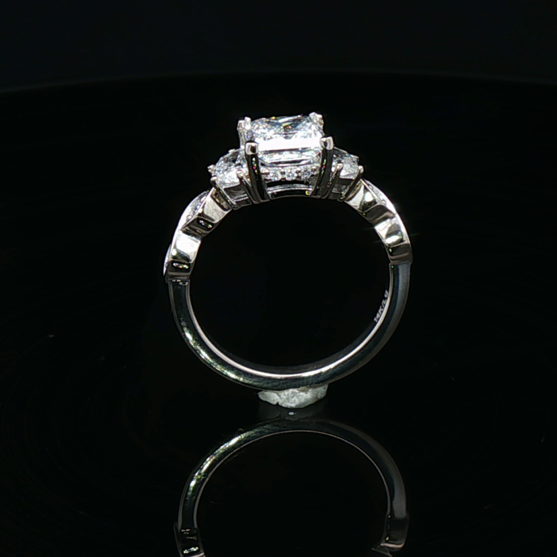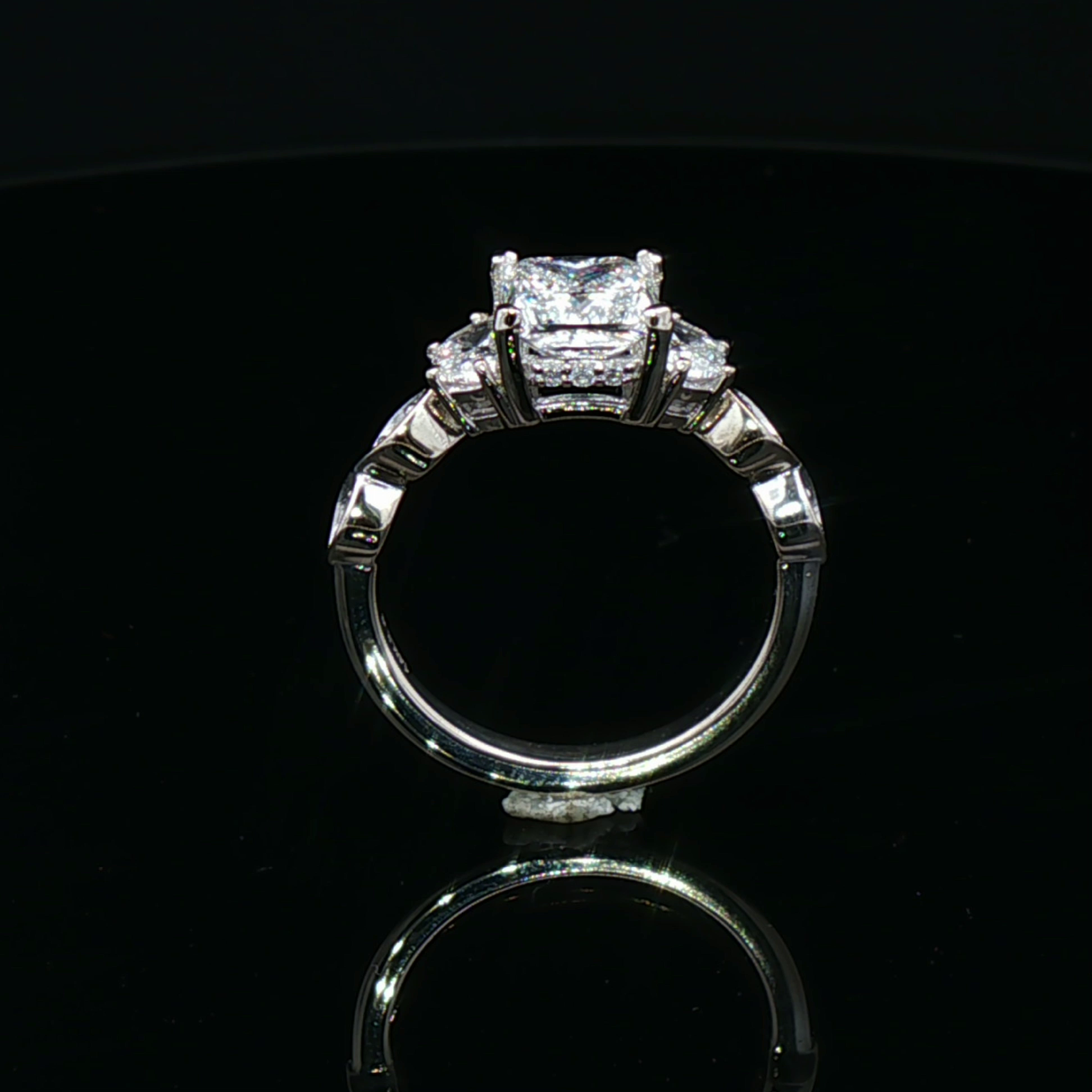 Exquisite engagement ring crafted in lustrous white gold, featuring a stunning princess-cut diamond. This ring embodies timeless elegance with its brilliant diamond cut, ensuring maximum sparkle and fire. A captivating symbol of enduring love and commitment, perfect for a lifetime of cherished moments.