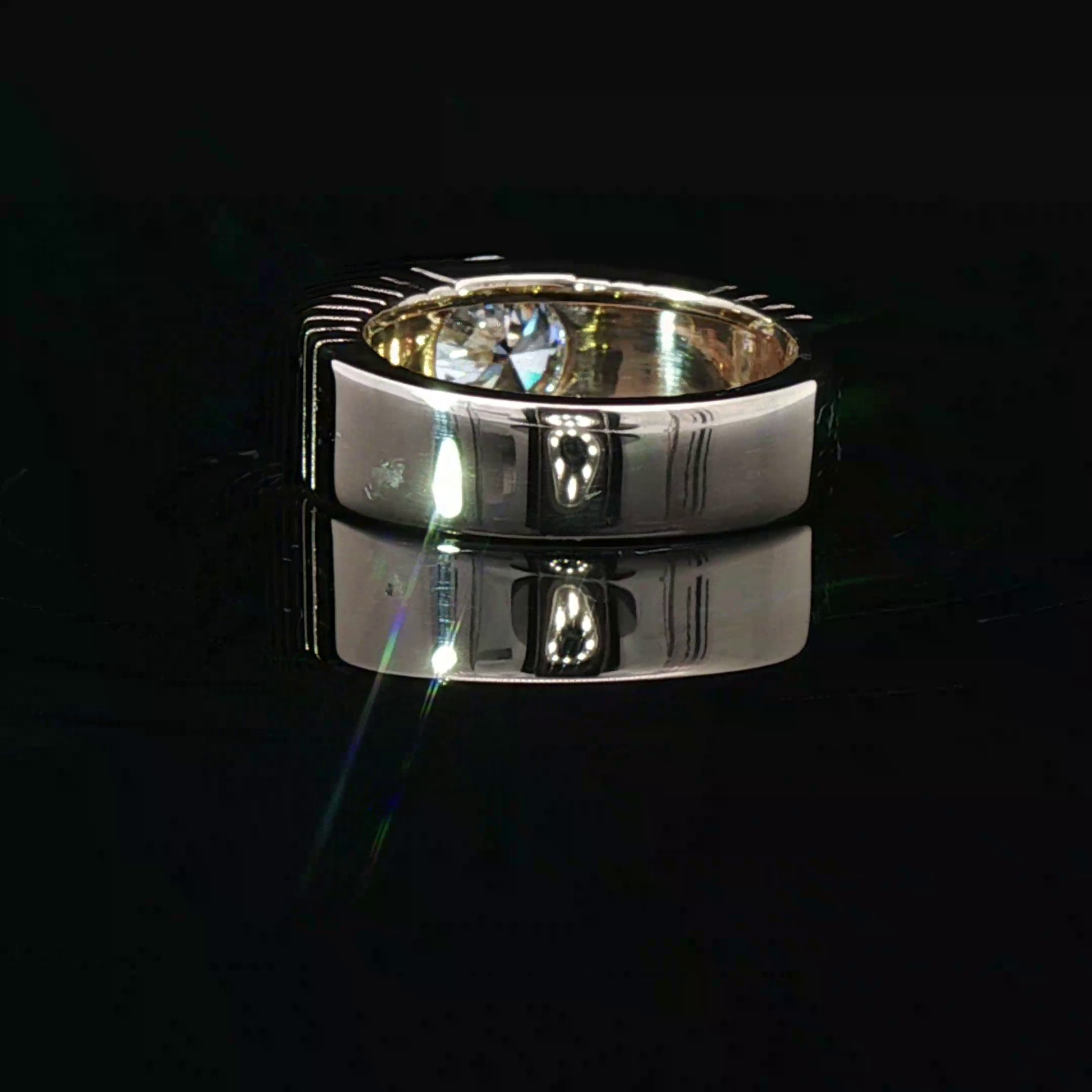 This striking solitaire ring showcases a brilliant round cut diamond, elegantly set in a sleek, yellow gold band. Its timeless design offers a modern twist on a classic style, perfect for everyday wear or a special occasion.