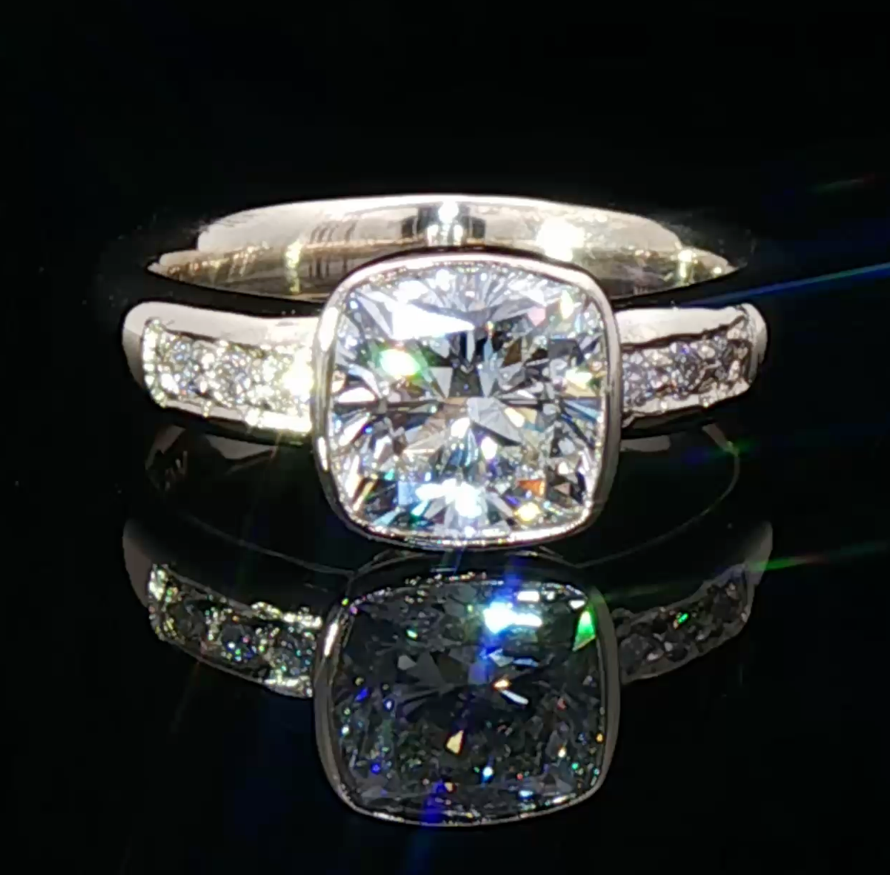 HOME / Bezel-Set Cushion Cut Diamond Engagement Ring