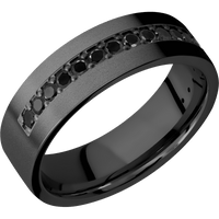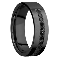 7 mm wide/Flat/Zirconium band with a Half Eternity arrangement of .03 carat Round Black Diamond stones in a Bead setting. - TCW 0.51ct.