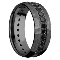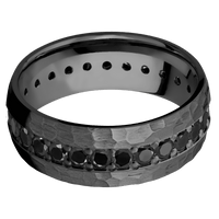 8 mm wide/Domed/Zirconium band with an Eternity arrangement of .05 carat Round Black Diamond stones in a Bead setting. - TCW 1.45ct.