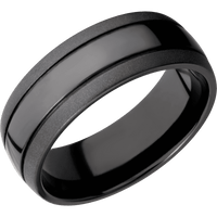 8 mm wide Domed with two accent grooves Zirconium band.