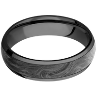 6 mm wide/Domed/Zirconium band with one 4 mm Centered inlay of Forged Carbon Fiber.