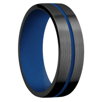 7 mm wide/Flat/Zirconium band with one 1 mm Centered inlay of Royal Blue also featuring a Royal Blue sleeve.